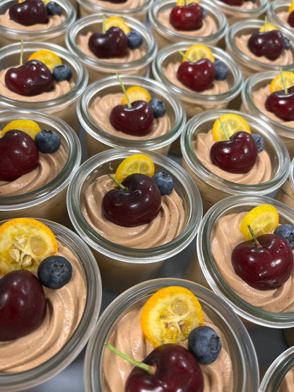 Unsere Gläsli-Desserts werden in kleinen Weckgläsern serviert – ideal, um verschiedene Sorten probieren zu können. Sie sind besonders beliebt bei Buffets, als Einzelportionen für Menüs.