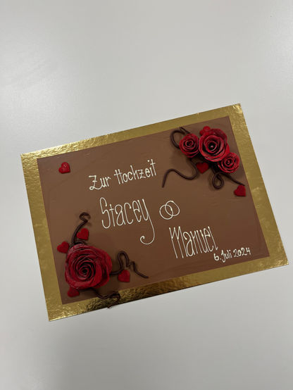 Egal ob Hochzeit, Geburtstag, Taufe, Jubiläum oder einfach als süsses Dankeschön zwischendurch – unsere Schokoladenkreationen lassen sich ganz nach euren Wünschen gestalten. Gerne beraten wir euch persönlich und zeigen euch, was alles möglich ist.
