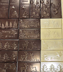 Mit unserem 3D-Drucker und der betriebsinternen Tiefziehmaschine erstellen wir individuelle Formen genau nach euren Wünschen – zum Beispiel Schokoladentafeln mit Logo oder individuelle Formen passend zu eurem Anlass.