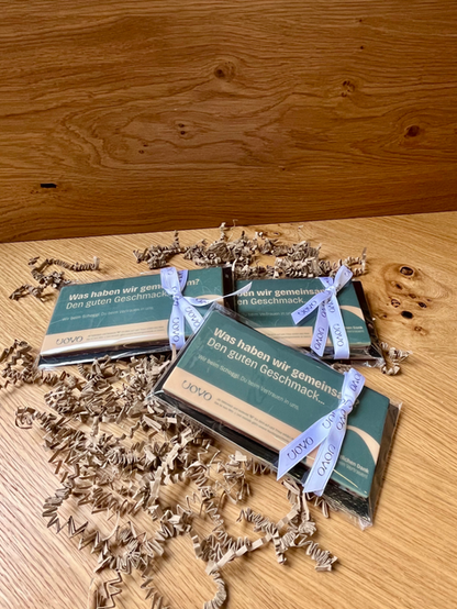 Aus feinster Schweizer Couverture stellen wir handgeschöpfte Schokoladentafeln her, die mit eurem Logo, Design oder Motiv bedruckt werden können.